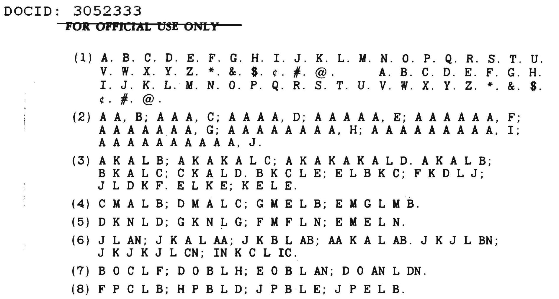 Each starting number represents a single transmission. The NSA example includes 30 unique sequences with the later ones introducing the concept of word groups. This would be the beginning of how to teach a language.